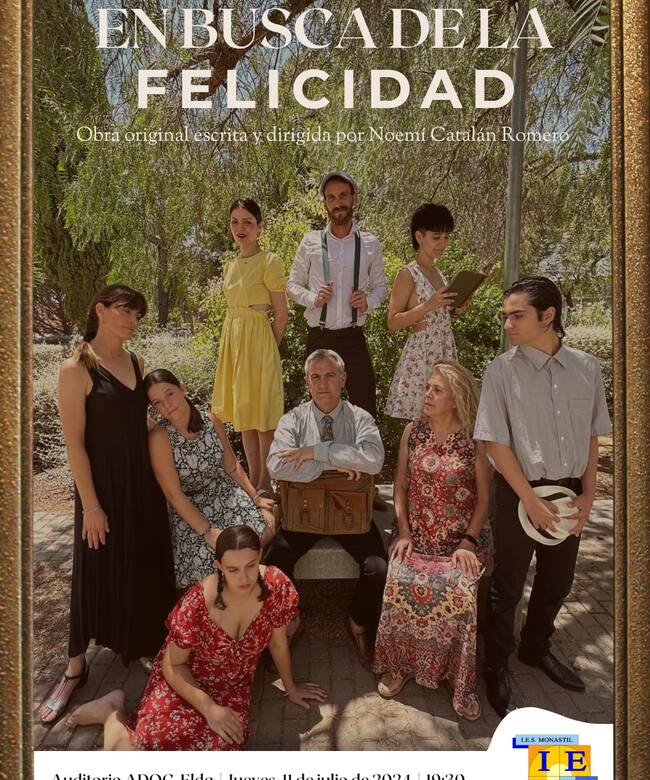 Alumnos, padres y profesores del IES Monastil de Elda se unen este jueves a las 19.30 h en una obra de teatro que será estrenada en el Auditorio ADOC. Bajo el nombre “En busca de la felicidad”, ha sido escrita y dirigida por la profesora del departamento de lengua y literatura Noemí Catalán Romero.