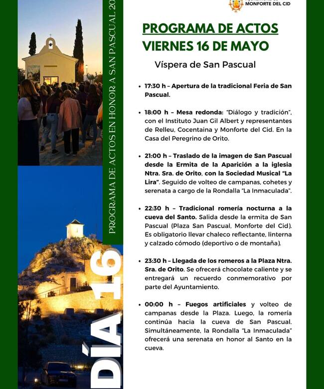 Monforte del Cid se prepara para vivir uno de los eventos más multitudinarios y emotivos de su calendario festivo: la Romería y Feria de San Pascual, que dará inicio este 16 de mayo. El concejal de Fiestas del municipio, Pascual Jesús Abad, ha explicado en La Ventana del Vinalopó que “todo está listo para recibir a la gran cantidad de personas que se esperan durante los días grandes de esta celebración, considerada la segunda romería más importante de la provincia de Alicante”.