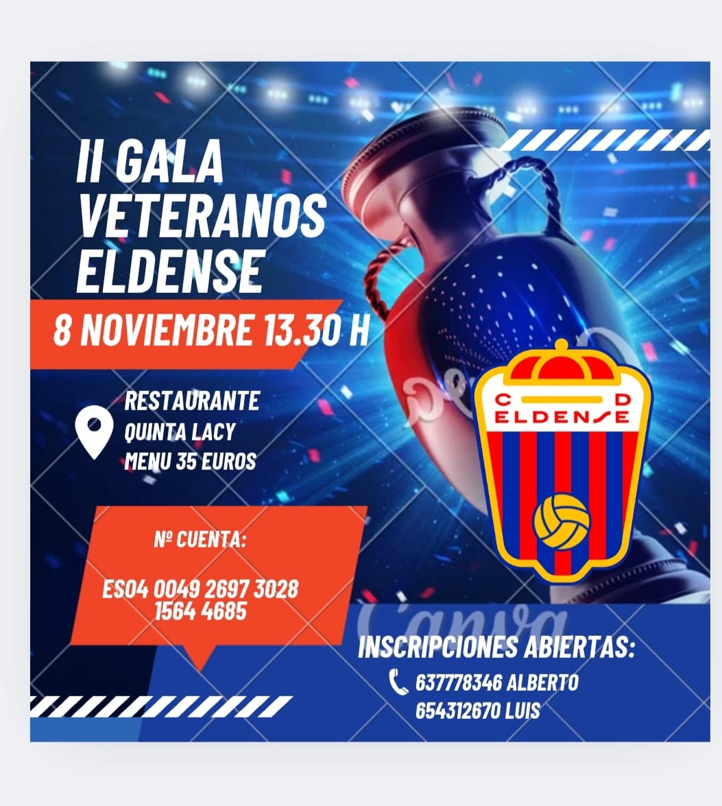 La Asociación de Veteranos del Club Deportivo Eldense celebrará el próximo sábado 8 de noviembre su segunda gala de convivencia, un encuentro que busca consolidarse como una cita anual entre antiguos futbolistas, simpatizantes y miembros de la familia azulgrana. La comida tendrá lugar en los Salones Quinta Lacy de Elda, que se está convirtiendo en la sede habitual de este acto.