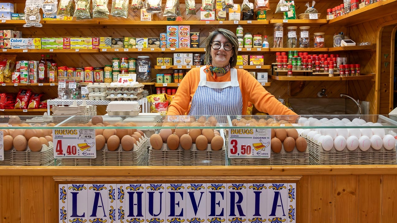 Después de más de tres décadas en el sector de exportación, María Rosario Morán González decidió emprender su propio camino y reinventar su vida profesional. Tomó el traspaso de un puesto de venta de huevos frescos en el Mercado Central de Elda, transformando un momento de incertidumbre en una oportunidad. “Yo estaba muy hundida en mis anteriores trabajos y, de repente, surgió la oportunidad. Pensé, ¿por qué no? En quince días lo decidí y aquí estoy”, comenta María Rosario sobre la decisión que marcó un antes y un después en su trayectoria.